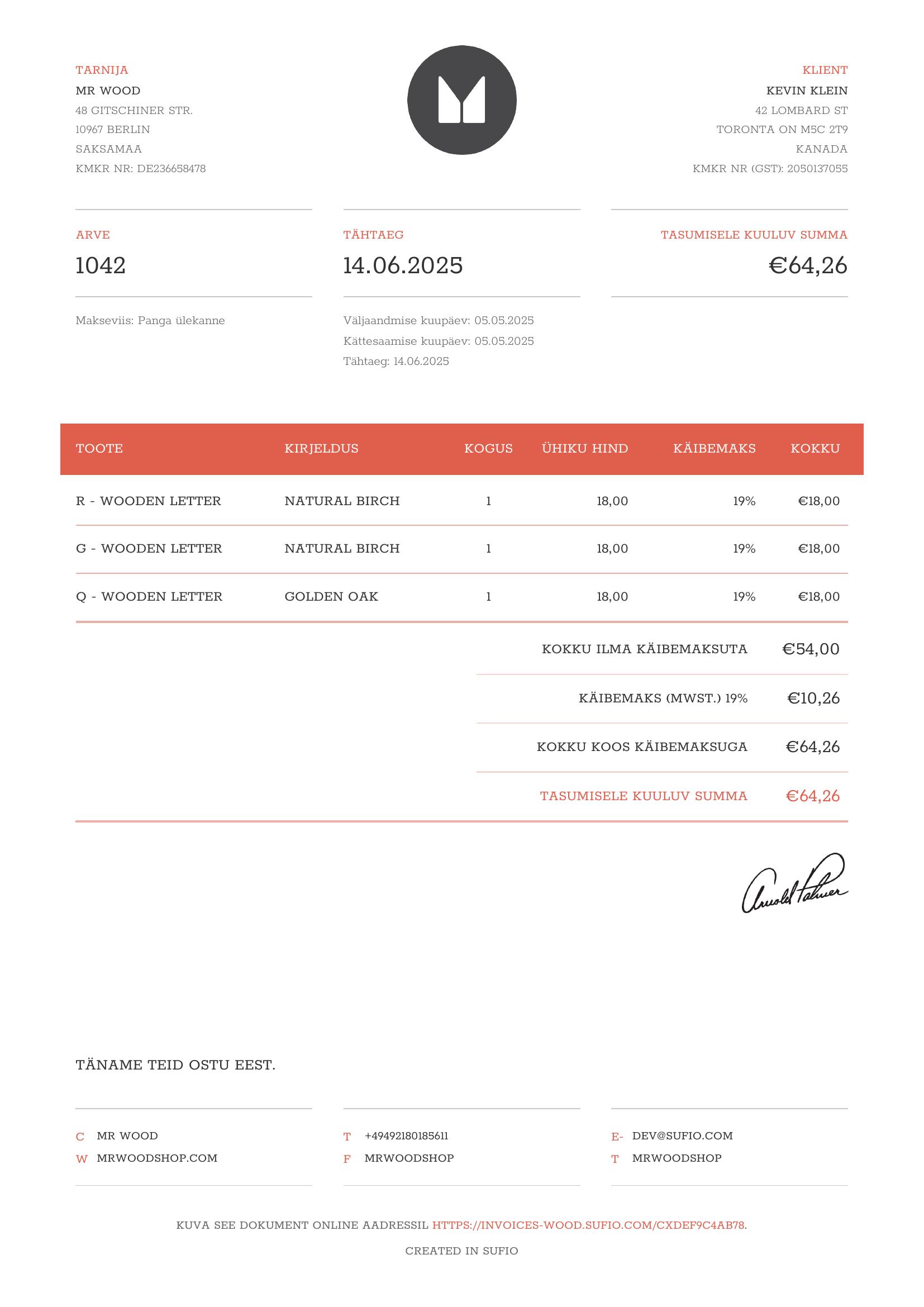 Estonian invoices for Shopify stores